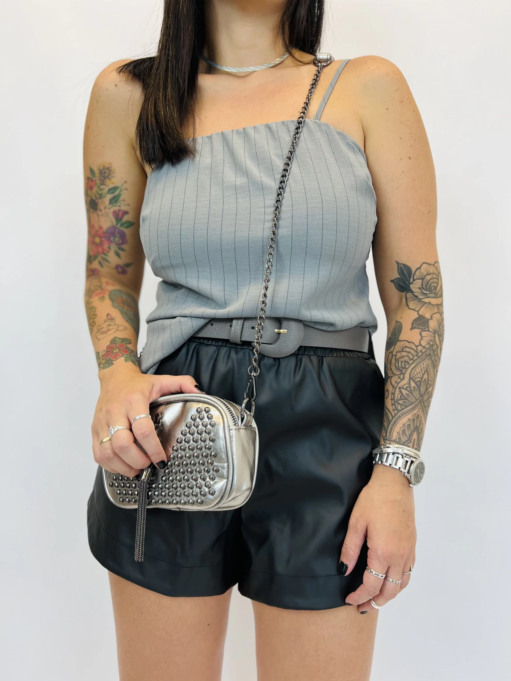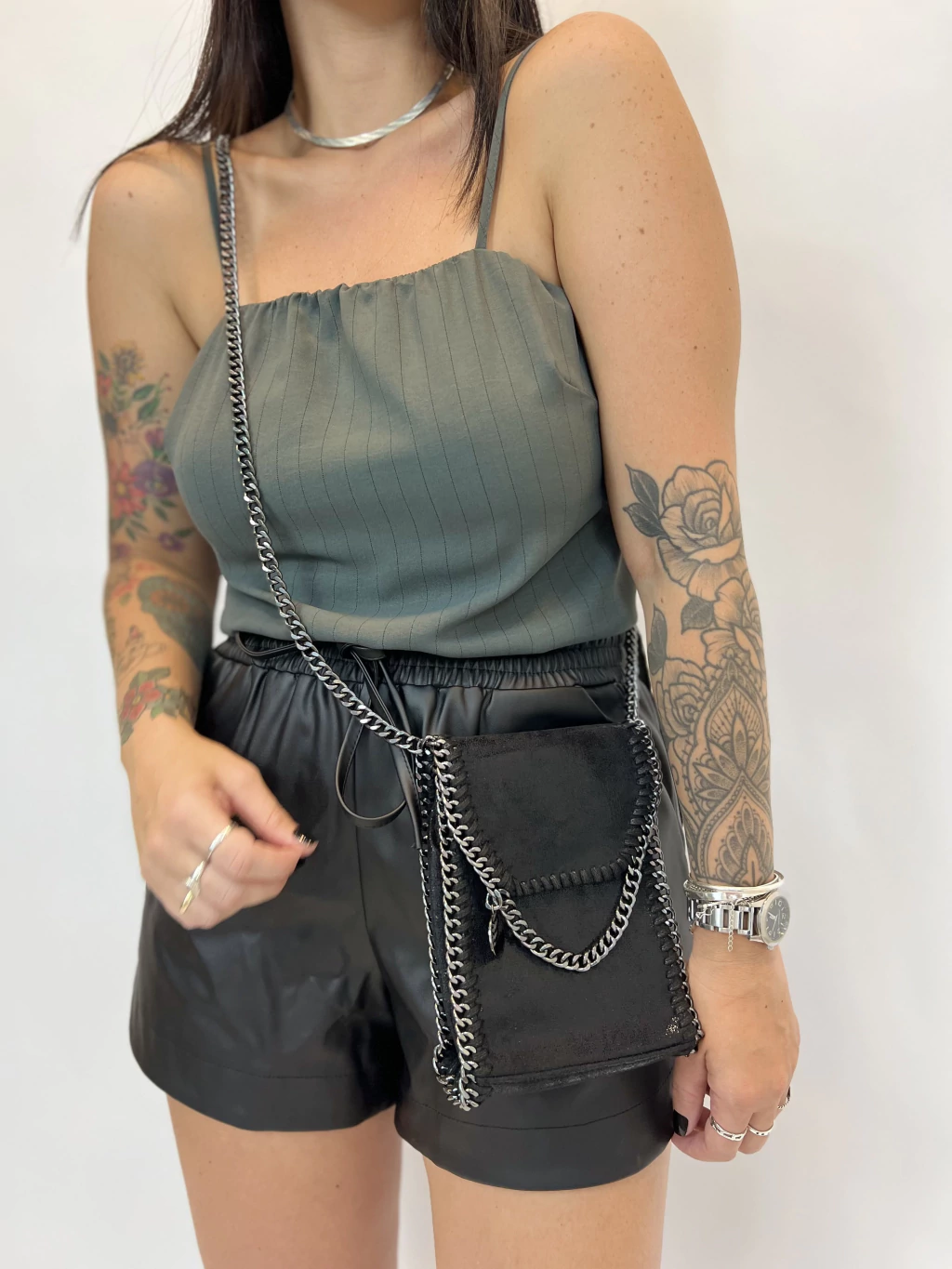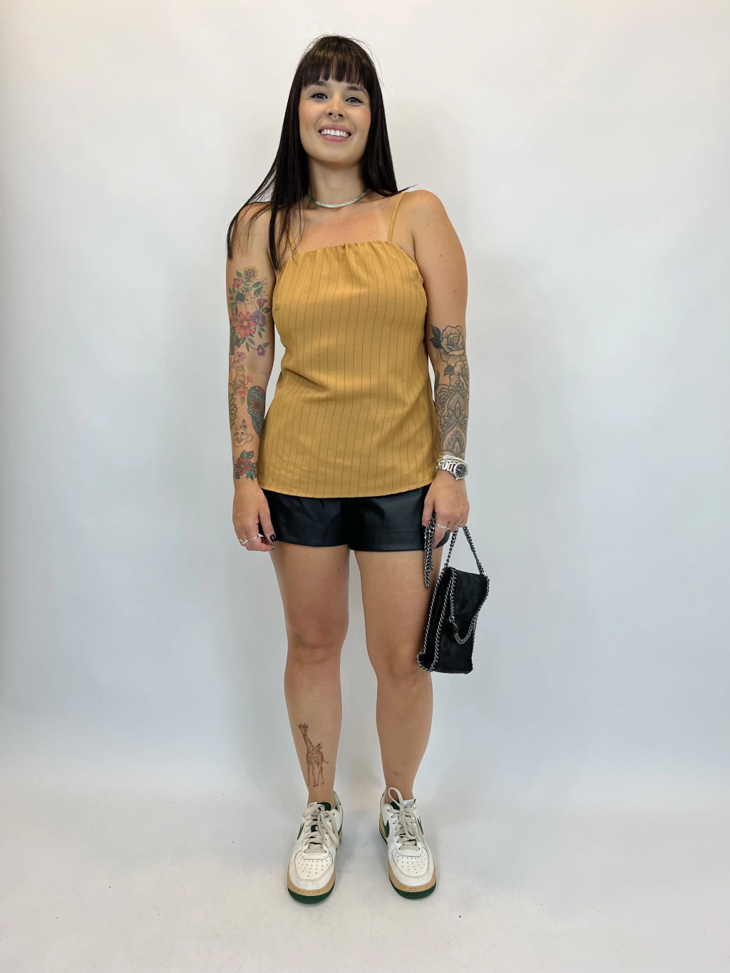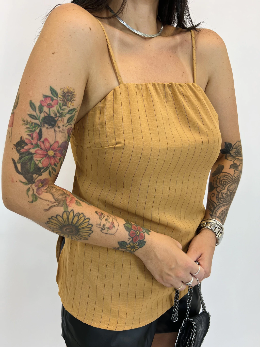 Blusa alcinha em crepe de seda com detalhes em risca de giz: sofisticação e elegância em cada detalhe