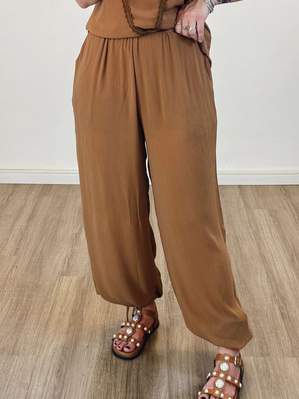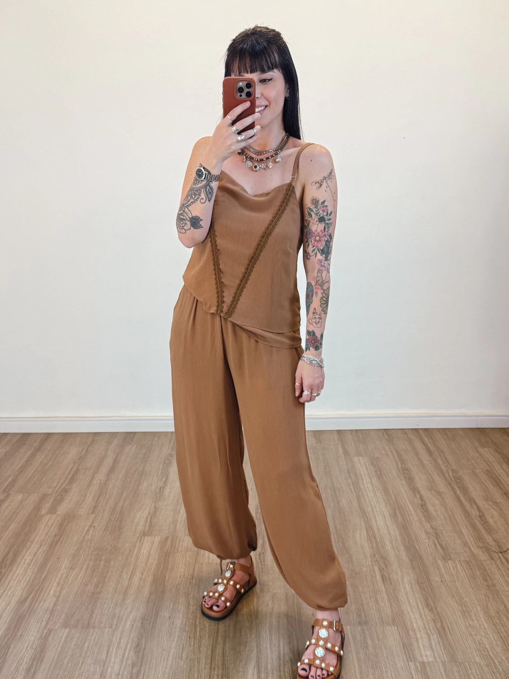 Versátil, leve e cheia de personalidade, a calça 2 em 1 é daquelas peças que se adaptam ao seu momento. Com modelagem inteligente, pode ser usada como pantalona fluida ou como calça estilo aladim, bastando ajustar a barra para transformar o visual. O cós elástico na parte de trás garante conforto caimento perfeito na cintura, enquanto tecido leve traz movimento e frescor.