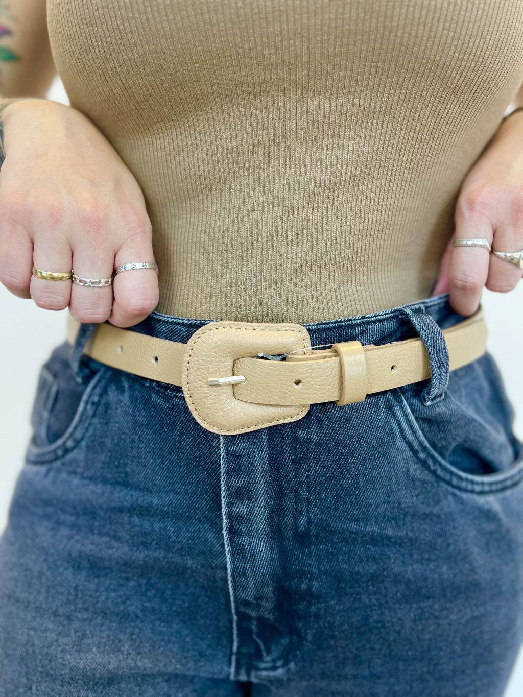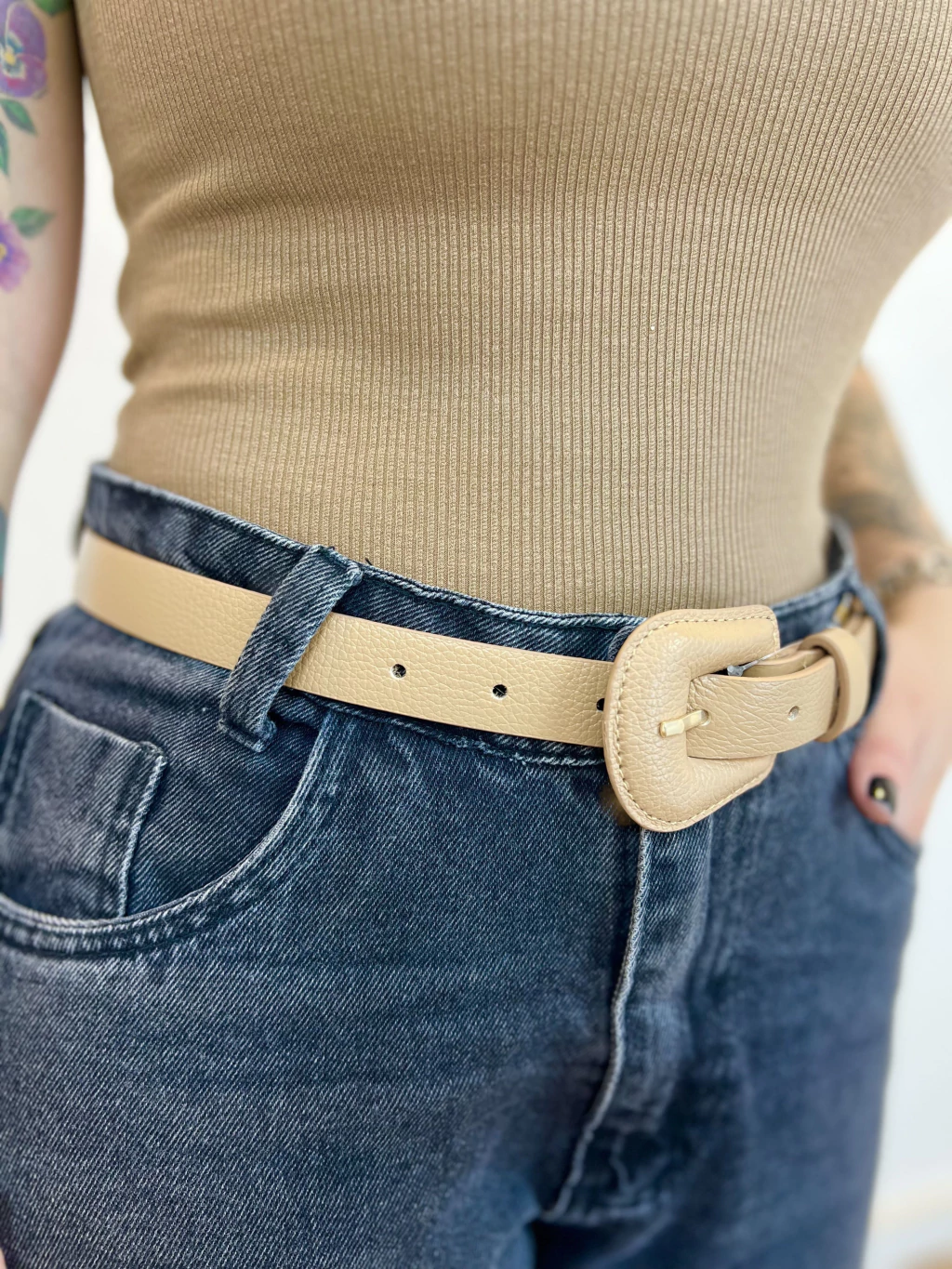 Um cinto básico de couro natural é um acessório clássico e durável, perfeito para complementar qualquer visual, oferecendo funcionalidade e estilo atemporal.