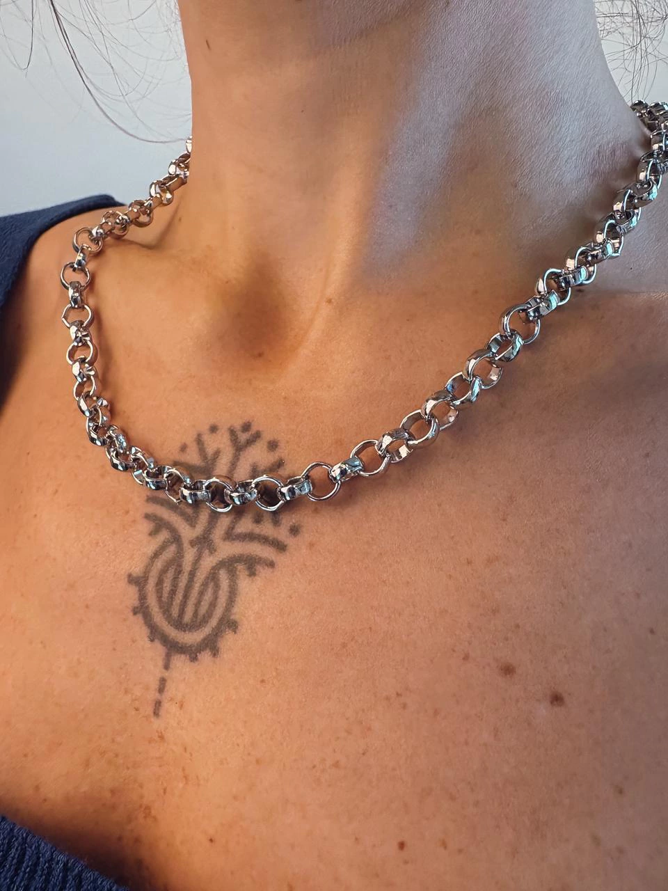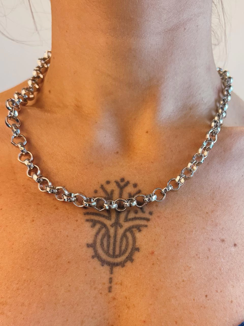 O colar Lume é a expressão perfeita do equilíbrio entre sofisticação e força. Como elos pequenos e acabamento com banho cataforético, ele garante brilho duradouro e resistência. Uma peça moderna e atemporal, que eleva qualquer produção com seu toque urbano e elegante. Comprimento 43cm.