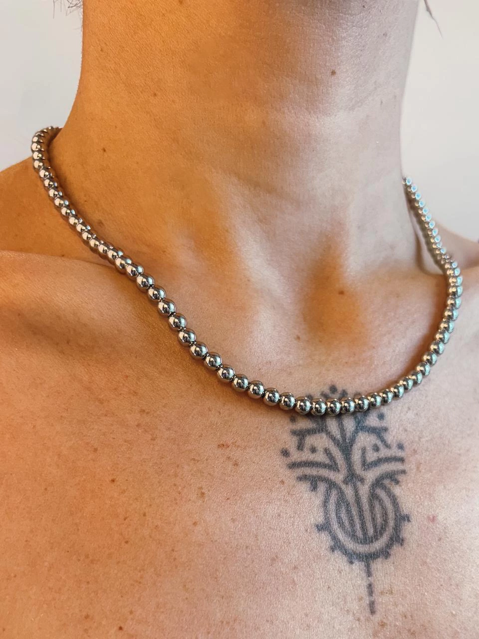 O colar Orbe é um clássico moderno: curto, elegante e cheio de personalidade. As esferas prateadas refletem a luz com sutileza, criando um brilho limpo e sofisticado que combina com tudo do look básico ao mais elaborado. Uma peça atemporal, perfeita para usar sozinha ou misturada a outros colares, trazendo sempre um toque de presença e estilo. Comprimento 43cm.