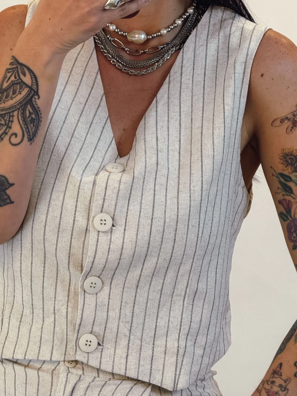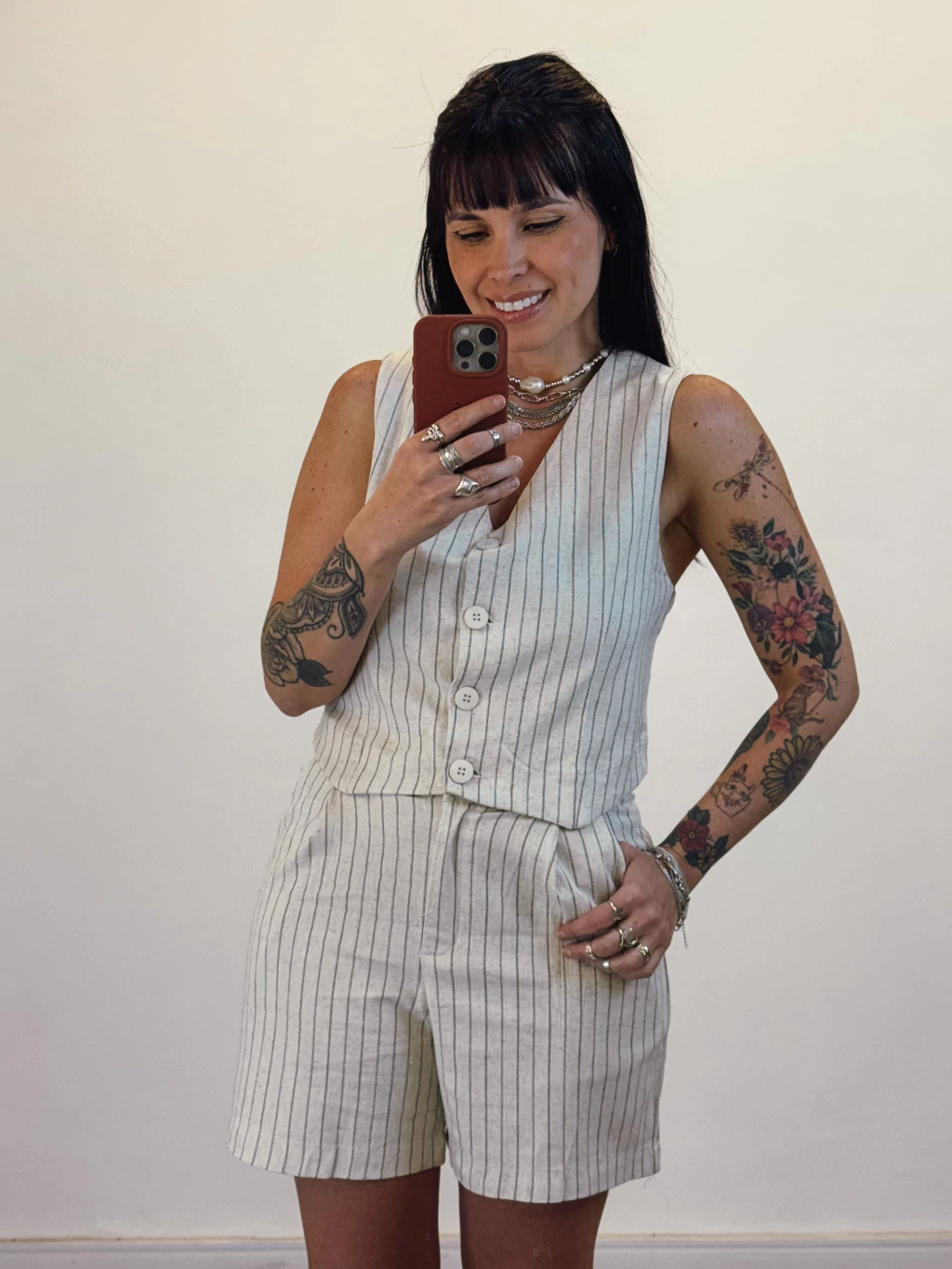 Descrição: O conjunto Savona traz o equilíbrio perfeito entre o estilo leve e o toque sofisticado. O colete possui botões verdadeiros e decote em V, valorizando o colo com elegância. Já a bermuda conta com bolsos funcionais e zíper frontal, garantindo praticidade e conforto no uso. Feito em tecido de toque natural e caimento suave, é uma escolha ideal para dias de calor com um ar de refinamento casual.