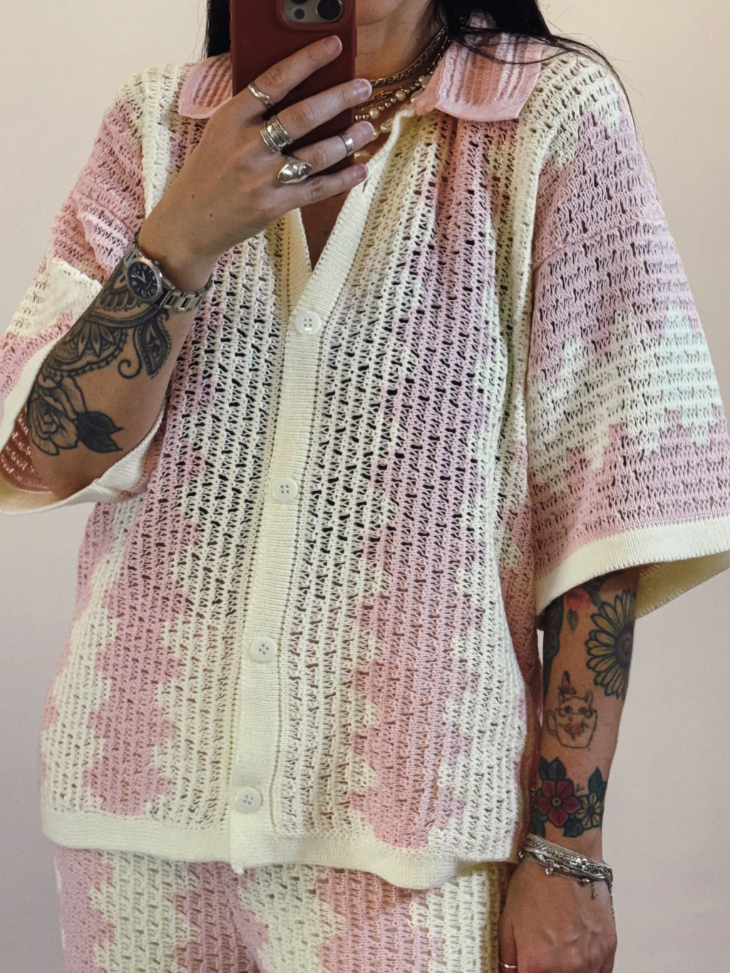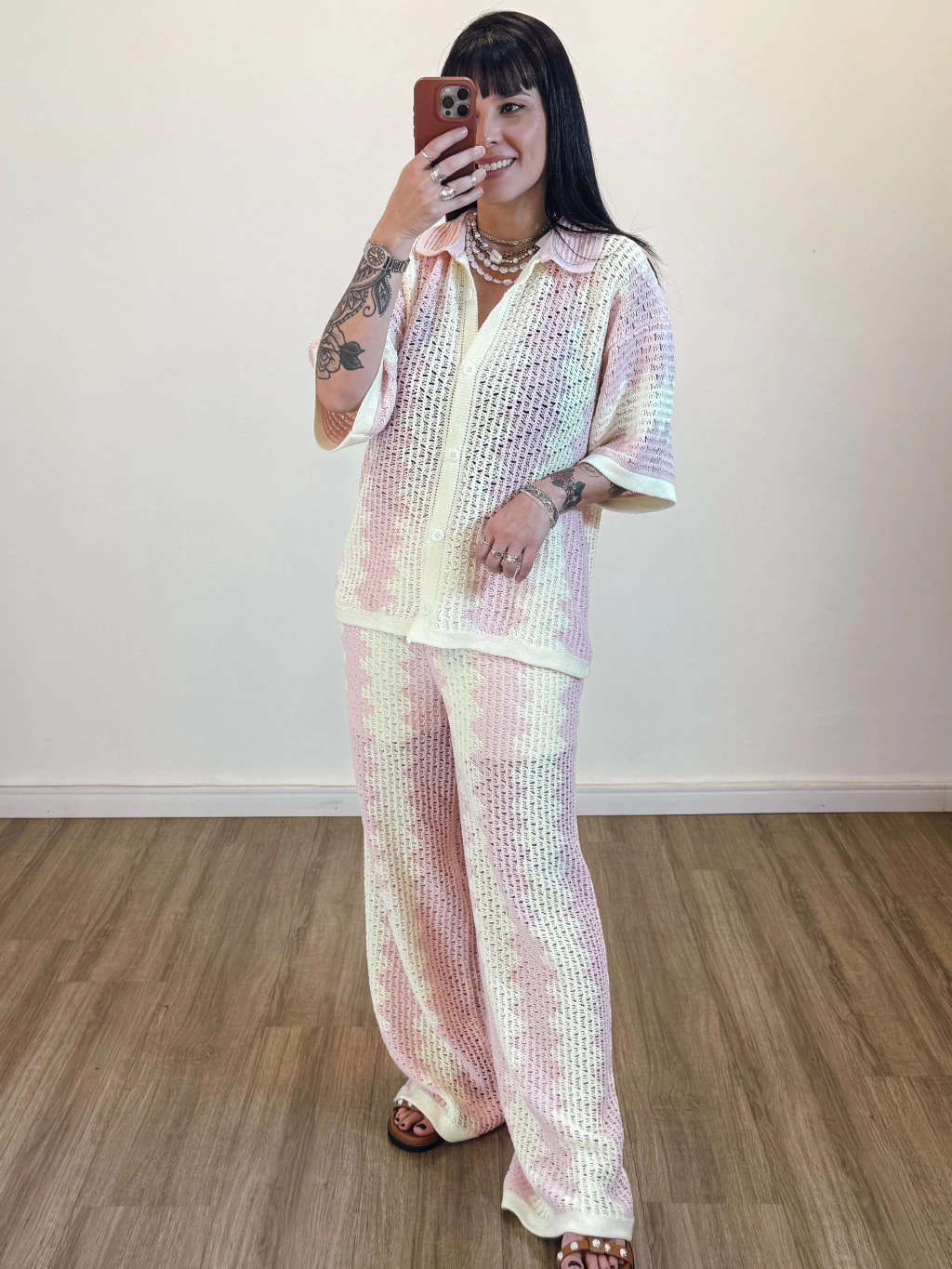 O Conjunto de Tricô Pisa traz uma camisa com botões frontais e calça com cós elástico, unindo praticidade e estilo em uma peça só. O toque macio do tricô proporciona aconchego, enquanto o caimento leve garante um visual sofisticado e descomplicado.