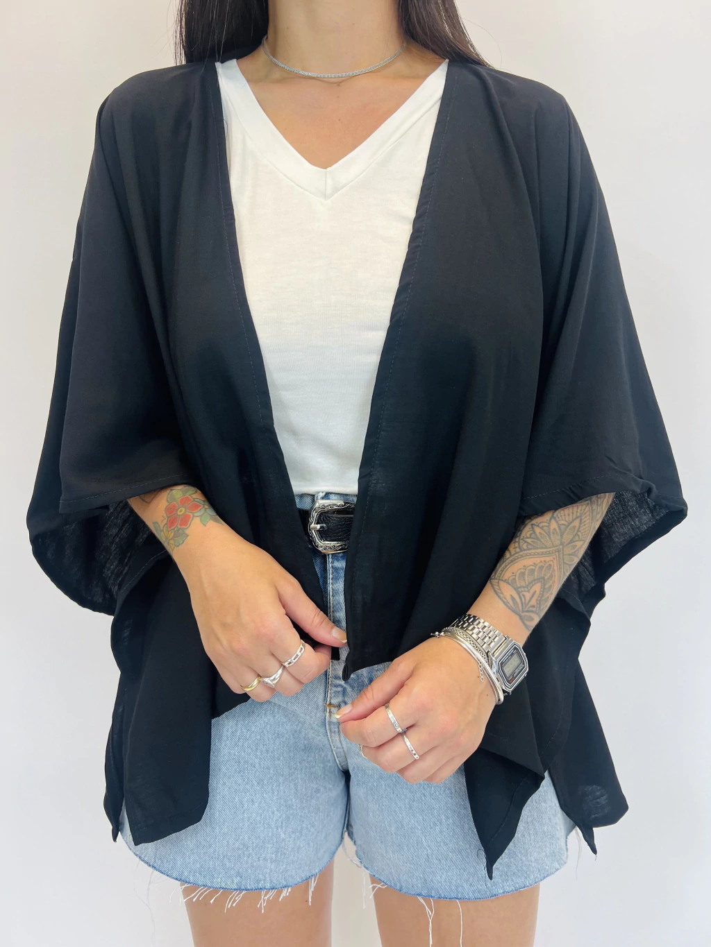 Elegância descomplicada! Nosso Kimono liso de viscolinho em cores sóbrias é pura sofisticação. Leve e soltinho, é a peça perfeita para um visual chique sem esforço.