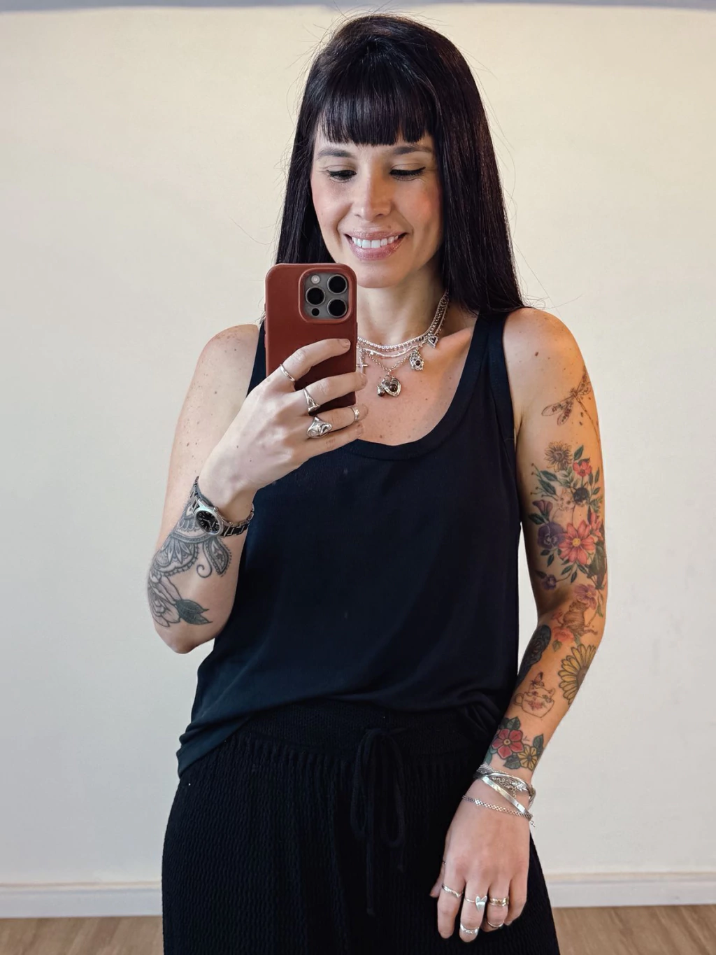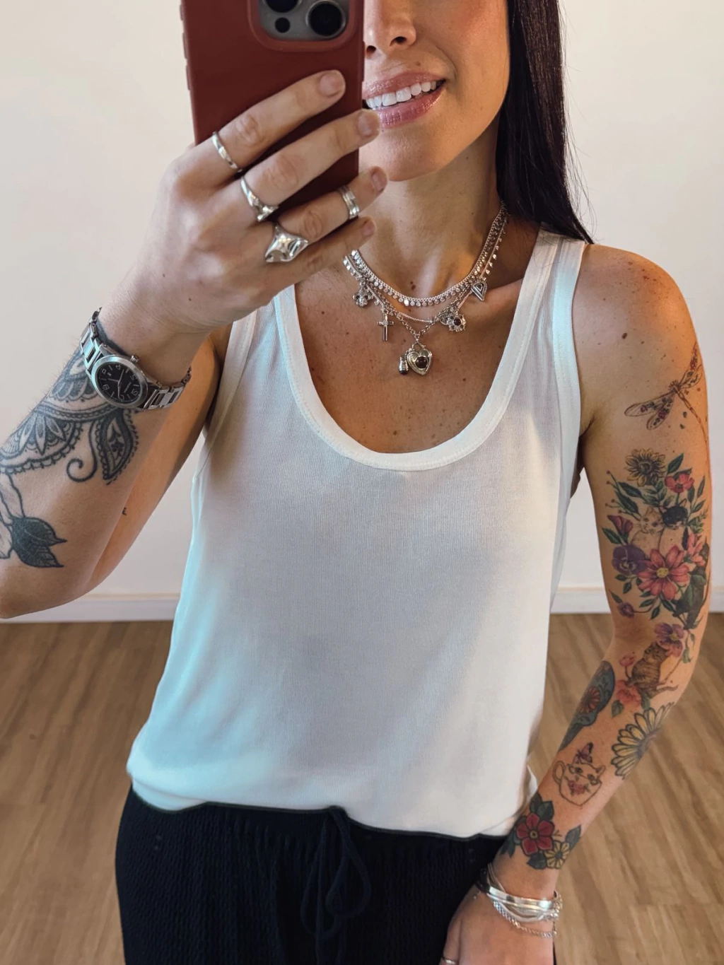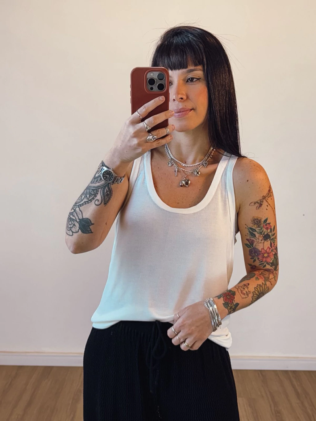 Sabe aquela peça simples que resolve qualquer look? É ela! Regata pobrinha é leve, fresquinha e superconfortável, feita pra te acompanhar em todos os momentos.Com modelagem básica e toque macio, é perfeita pra usar sozinha nos dias quentes ou como base pra sobreposições.