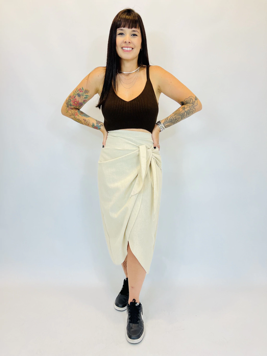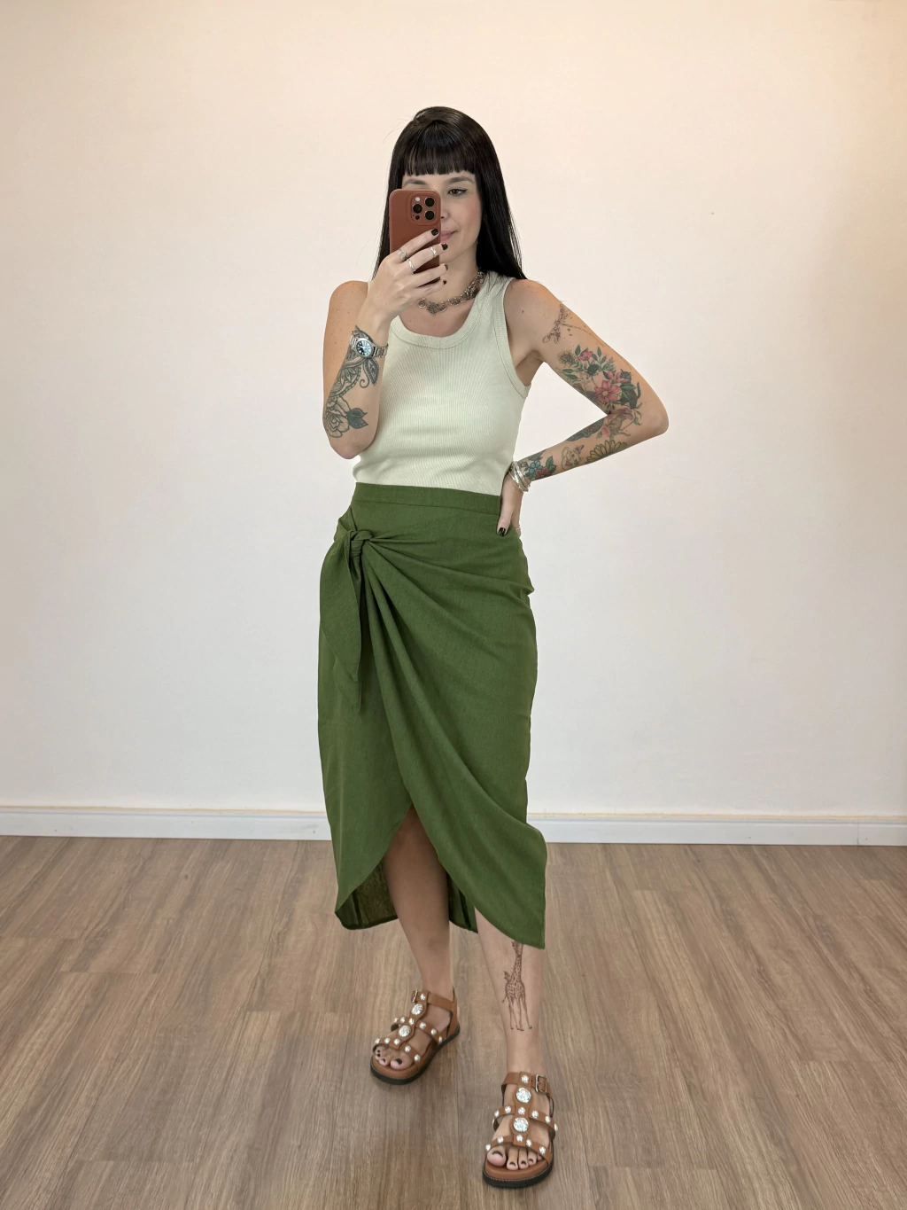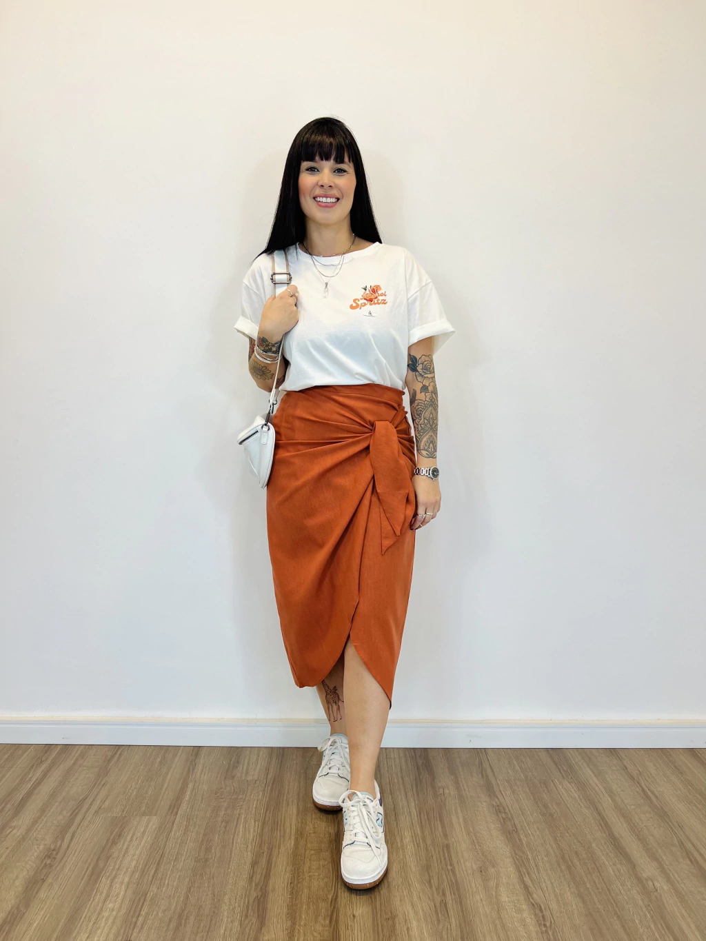 A saia boho midi em linho é perfeita para a cliente que busca versatilidade e elegância. Seu design atemporal se adapta a diversas ocasiões, proporcionando um look leve e sofisticado. O linho confere um toque de naturalidade, tornando-a uma escolha ideal para quem valoriza o conforto e a atemporalidade na moda.