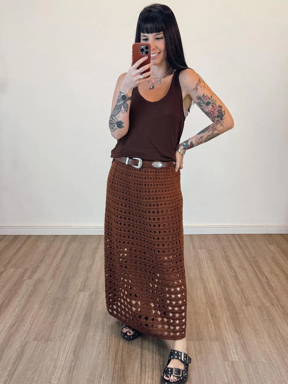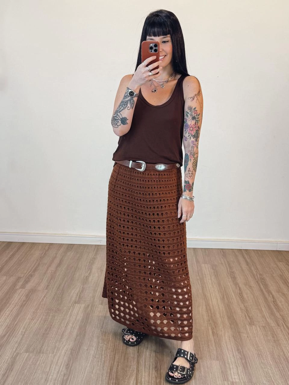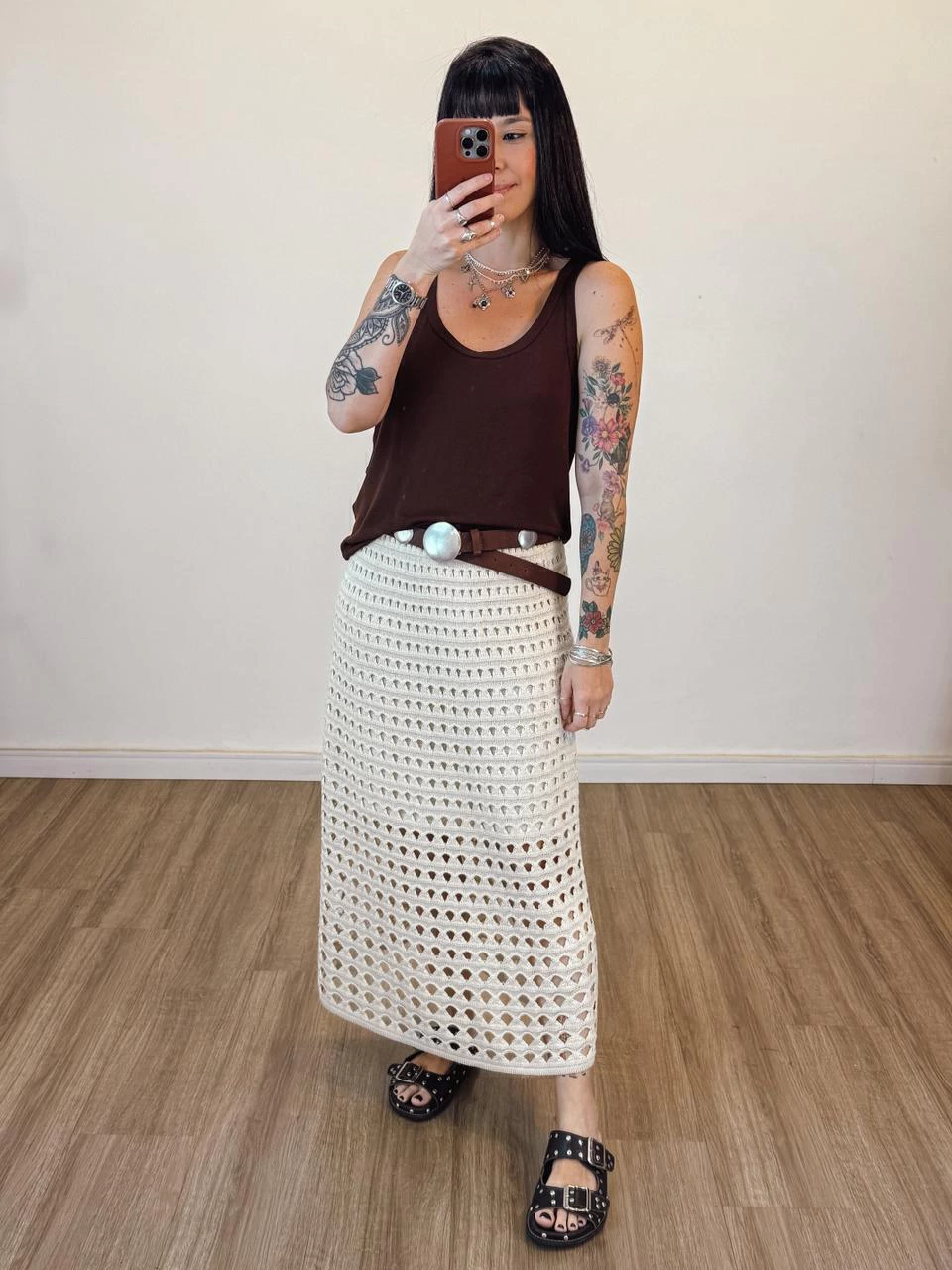 Leve, confortável e cheia de estilo. A Saia Tricô Turquia tem cintura com elástico, que se ajusta perfeitamente ao corpo sem apertar.