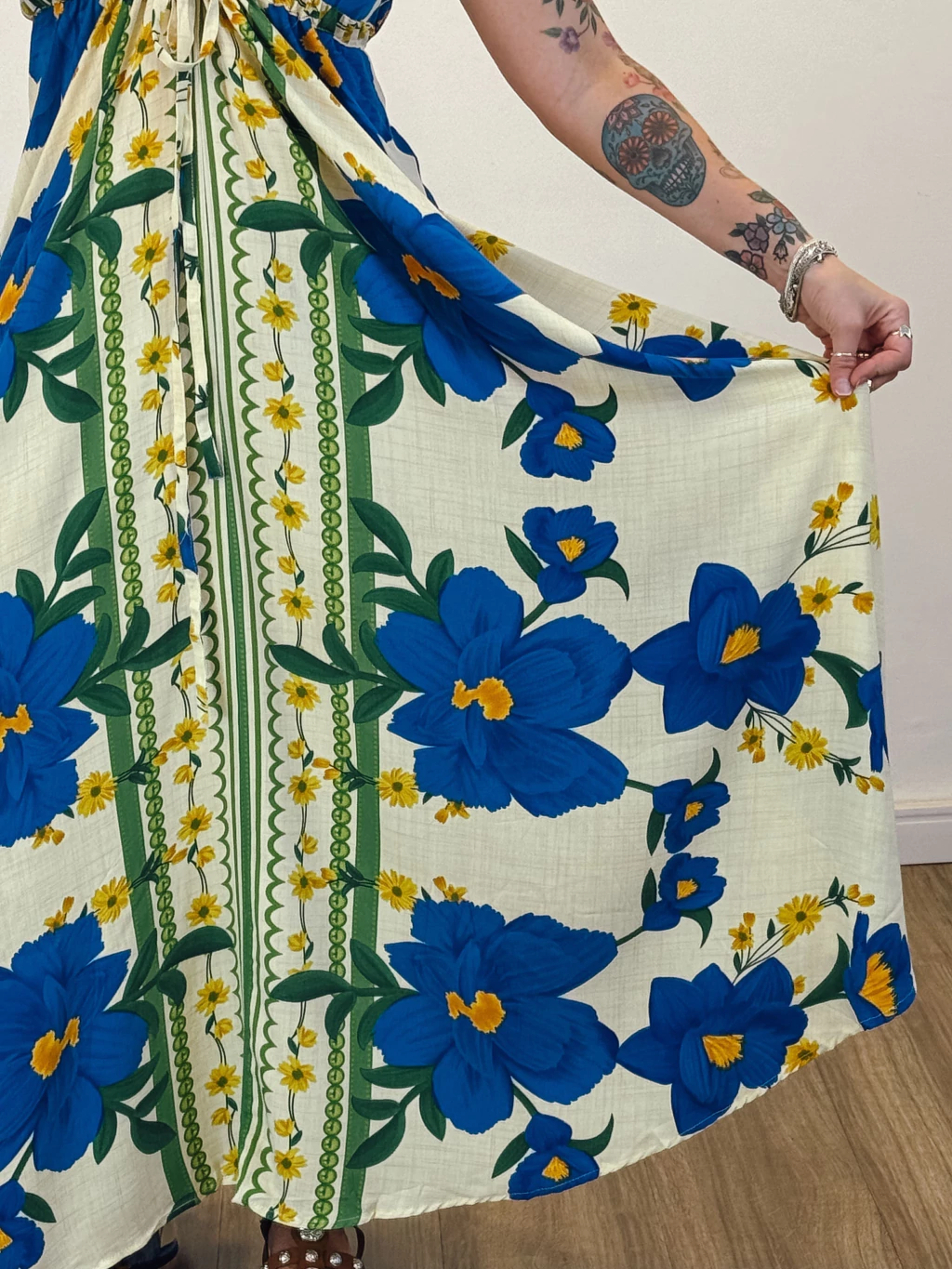 O Vestido Havaí tem modelagem leve e soltinha, com ajuste na cintura para valorizar a silhueta e amarração nas costas, garantindo um caimento perfeito e um toque de charme artesanal. Confortável, versátil e com aquele ar despreocupadamente chic que é a cara da Figurino.